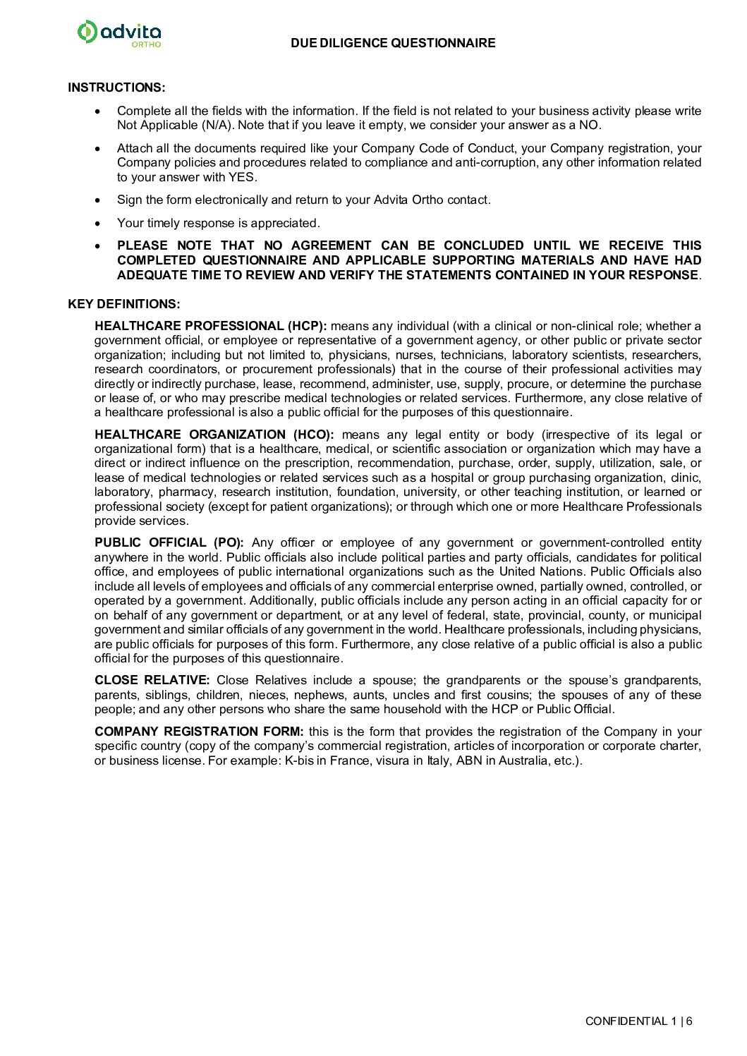Due Diligence Questionnaire – EMEA NL