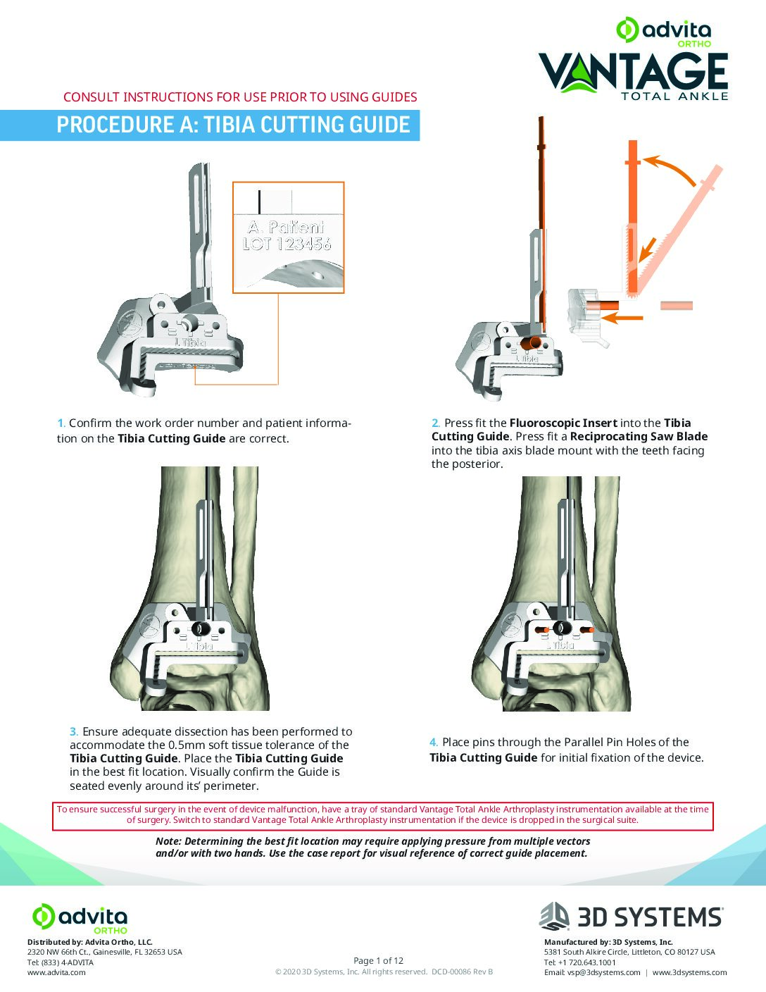 Vantage Ankle 3D & 3D+ Tibias